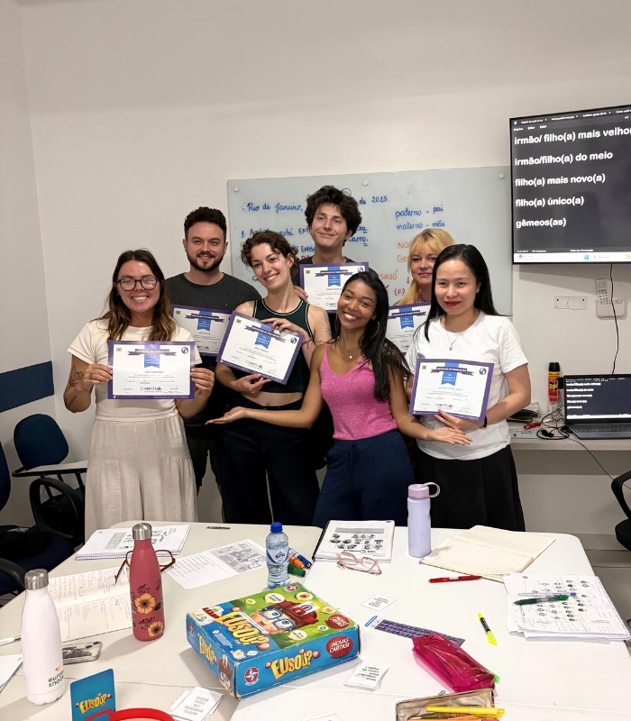 O nosso Curso Intensivo de Português oferece 20 horas de aulas por semana, combinando gramática, conversação, leitura, escrita e compreensão auditiva em um ambiente dinâmico e envolvente. As aulas são projetadas para que você se comunique com confiança desde o primeiro dia, com inúmeras oportunidades de praticar português em situações reais.