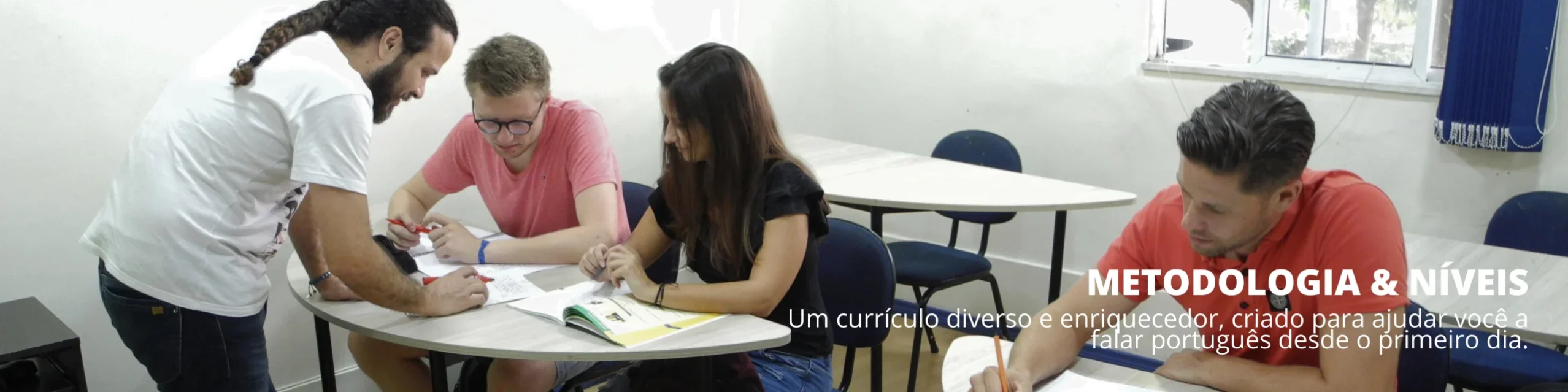 Nossos cursos em grupo são oferecidos em 12 níveis diferentes, desde o Básico (A1) até o Avançado Alto (C), seguindo o Quadro Europeu Comum de Referência para Línguas. Somos a única escola de idiomas do Rio de Janeiro que oferece português para estrangeiros nesses 12 níveis, garantindo uma diferenciação saudável entre os níveis das turmas.