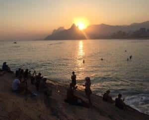 Pôr do Sol (Sonnenuntergang) in Arpoador – Den Sonnenuntergang in Arpoador anzusehen ist Pflicht hier in Rio. Man kann sich mit seinen Freunden treffen und es ist gleichzeitig ein romantischer Ort für ein Date. Kauft euch eine Kokosnuss oder ein cerveja, setzt euch auf den Felsen und schaut euch den Sonnenuntergang an. Manchmal passiert es sogar, dass die Menge applaudiert, wenn die Sonne verschwindet. Arpoador ist nur 10 bis 15 Fußminuten von der Schule entfernt und ein beliebter Treffpunkt unserer Studenten, um sich zu verabreden, zu entspannen und auszutauschen.