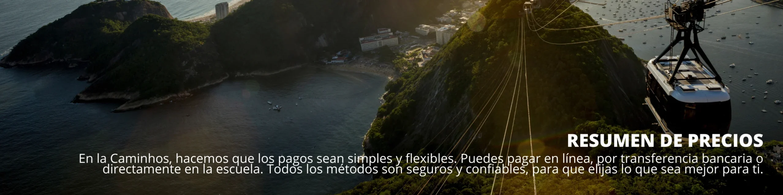 En la Caminhos, hacemos que los pagos sean simples y flexibles. Puedes pagar en línea, por transferencia bancaria o directamente en la escuela. Todos los métodos son seguros y confiables, para que elijas el que mejor se adapte a ti al consultar los Precios de los Cursos de Portugués.